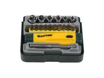 - Набор отвертка реверсивная с битами Kraftool 26143-H18 (18 предметов) по выгодной цене 420 р. руб.;