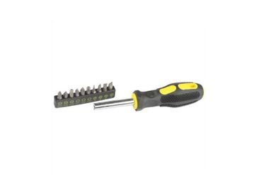 Набор используется при крепежных работах. Комплект состоит из 21 предмета (20 бит и отвертка-битхолдер с магнитом ). Стержень отвертки изготовлен из качественной хромованадиевой стали. Удобная двухкомпонентная рукоятка. Общие характеристикиВид отвёрткиНаборКомплектацияОтвертка-битхолдер с магнитом - 1 шт Биты - 20 шт None Есть доставка.
