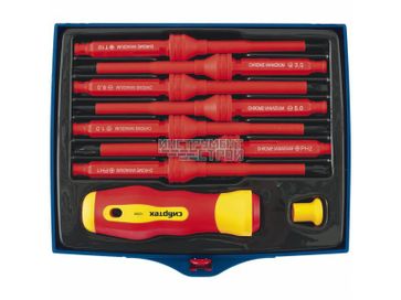 - Отвертка Сибртех 12938 (сменные жала, диэлектрическая до 1000В, CrV, 9 предм) по выгодной цене 585 р. руб.;