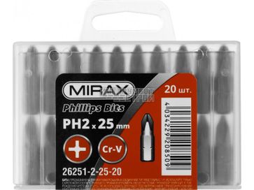- Биты Mirax 26251-2-25-20 (PH№2, хвостовик C 1 4", длина 25мм, 20шт) по выгодной цене 113 р. руб.;