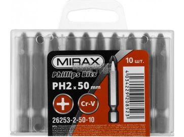 - Биты Mirax 26253-2-50-10 (PH№2, хвостовик E 1 4", длина 50мм, 10шт) по выгодной цене 113 р. руб.;