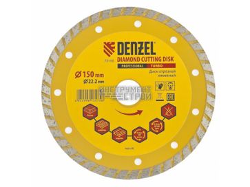 - Диск алмазный отрезной Denzel Turbo 73110 (150 х 22,2 мм, сухая резка) по выгодной цене 337 р. руб.;
