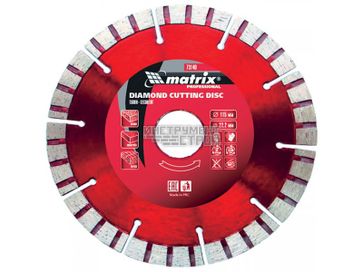 - Диск алмазный отрезной Турбо-сегментный, сухая резка Matrix Professional 73140 (115 х 22,2 мм) по выгодной цене 243 р. руб.;