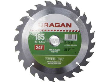 - Диск пильный по дереву "Быстрый рез" Uragan 36800-185-20-24 (185x20мм, 24Т) по выгодной цене 235 р. руб.;