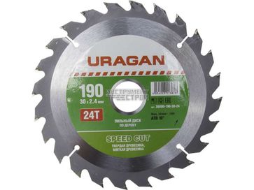 - Диск пильный по дереву "Быстрый рез" Uragan 36800-190-30-24 (190х30мм, 24Т) по выгодной цене 218 р. руб.;