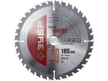 - Диск пильный по дереву "Оптимальный рез" Зубр "Мастер" 36912-185-20-36 (185x20, 36Т) по выгодной цене 504 р. руб.;