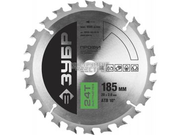 - Диск пильный ЗУБР Профи Быстрый рез 36850-185-20-24 (по дереву, 24Т, 185х20мм) по выгодной цене 677 р. руб.;