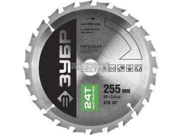 - Диск пильный ЗУБР Профи Быстрый рез 36850-255-30-24 (по дереву, 24Т, 255х30мм) по выгодной цене 1 271 р. руб.;