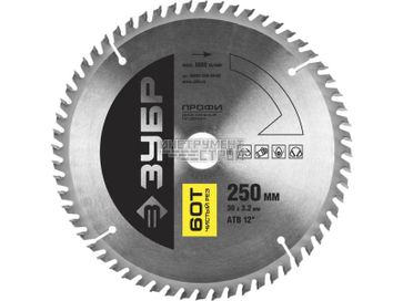 - Диск пильный ЗУБР Профи Чистый рез 36852-250-30-60 (по дереву, 60Т, 250х30мм) по выгодной цене 1 625 р. руб.;