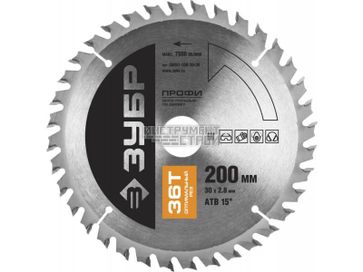 - Диск пильный ЗУБР Профи Оптимальный рез 36851-200-30-36 (по дереву, 36Т, 200х30мм) по выгодной цене 1 073 р. руб.;