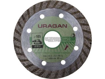 Закажите Круг отрезной алмазный, для УШМ Uragan "Турбо" 909-12131-105 (105х22,2мм) у компании Инструментстрой.рф в Екатеринбурге на портале Alloy: