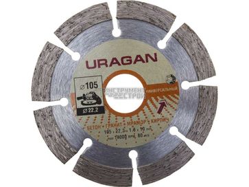 - Круг отрезной алмазный сегментный, для УШМ Uragan 909-12111-105 (105х22,2мм) по выгодной цене 130 р. руб.;
