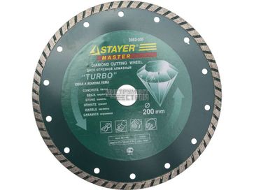 - Круг отрезной алмазный, сухая и влажная резка, для УШМ Stayer "Turbo" 3662-200 (22,2х200мм) в каталоге Отрезные круги в Екатеринбурге;