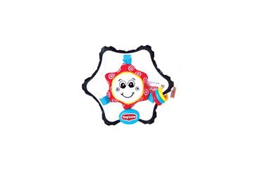 Погремушка прорезыватель Звездочка. Игрушка - погремушка, с веселой мордашкой, подвижной сердцевиной, окруженной текстурными элементами и безлопастным зеркальцем на обратной стороне. На внешней стороне контура расположены каучуковые покрывные элементы, которые превращают погремушку в удобный и безопасный прорезыватель. Размер игрушки: 12х12х3,5 см. None