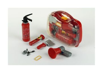 Великолепный набор для любимой детьми игры в пожарных. В красивом пластиковом чемоданчике собрано все необходимое: огнетушитель, фонарь, топорик, мегафон, свисток, бейдж. None