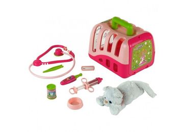 Отличный подарок для маленьких девочек - набор ветеринара от компании Klein! Симпатичный меховой котёнок нуждается в помощи и уходе - помогите ему!В комплекте есть всё необходимое, чтобы вылечить любимого питомца: стетоскоп, градусник, шприц с лекарством, микстура, мисочка, таблетки, бирка с именем питомца.Набор упакован в красивый розовый чемоданчик с ручкой. None
