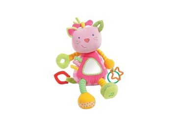 Развивающая игрушка-подвеска Кэтти, 35см. Функционал: хвост с прорезывателем вибрирует, колокольчик, зеркальце, музыкальный чип, лапки с горошинами, шуршащие элементы, погремушка, разнофактурные материалы None