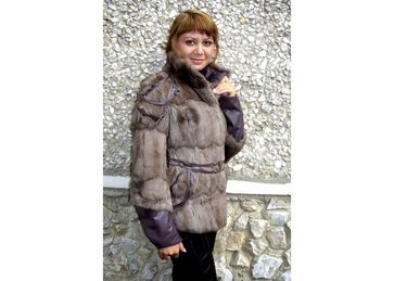 На фото:Шубка из меха белки со вставками из натуральной кожи и декорированная кожаными ремешками.Другие оригинальные модели шуб вы можете увидеть на нашем сайте: www.pehtashev.ru