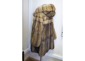 На фото:роскошная шубка светло-коричневого цвета из меха соболя (трапеция с капюшоном!)