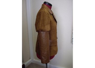 ПОШИВ Жакета из замши,с кожаным воротником и оригинальными рукавами,жакет на пуговицах, с двумя карманами.На фото: Жакет из замши терракотового цвета, с кожаным воротником и оригинальными рукавами из кожи.В стоимость включена работа по созданию Жакета, не включена цена материалов (замша,кожа).