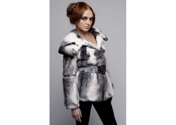 На фото:Шубка из меха норки со вставками из натуральной кожи и декорированная искусственными камнями. Другие оригинальные модели шуб вы можете увидеть на нашем сайте: www.pehtashev.ru