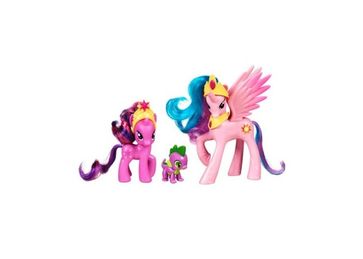 Игровой набор для детей из серии игрушек My Little Pony (Моя маленькая пони) – это несколько вариантов игровых наборов. Один из наборов «Друзья королевского замка» - содержит пони принцессу Селестию с крыльями (высота фигурки: 12 см) и пони Твайлайт Спаркл (высота фигруки: 9 см), а также фигурку дракончика Спайка (высота фигурки 5 см). None