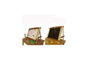 Доска двусторонняя настольная перекидная из массива дерева. Одна сторона предназначена для рисования мелом, вторая - для письма маркерами и под магниты. Материал: дерево. None