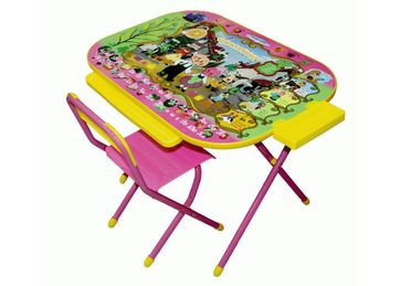 Комплект мебели "Всезнайка"Увеличенная рабочая поверхность 550800 (для сравнения набор №1,2 имеют размер 450600) !!! скругленные для безопасности углы.большая система хранения - большой ящик под столешницей, боковой пенал и желоб для хранения канцтоваров.красивые рисунки с персонажами любимых мультфильмов. None