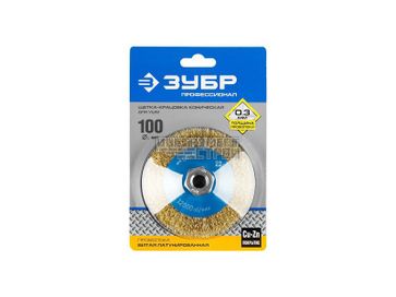 - Щетка коническая для УШМ ЗУБР Профессионал 35267-100_z02 (0,3 мм, 100 мм, М14, латун. стальная) по выгодной цене 332 р. руб.;
