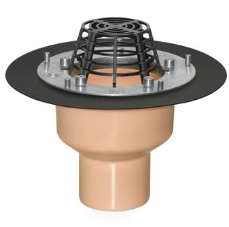 Кровельная воронка из полиуретана, теплоизолированная, отвечает требованиям GET и DIN EN 1253, с фланцем для зажима битумной, полимерной или каучуковой гидроизоляции, с листвоуловителем и уплотнительными манжетами.