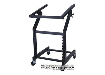 PROAUDIO DJR-02 рэковая стойка на колёсах и креплением для пульта с изменяемым углом наклона площадки под пульт, 8 прямых, 12 наклонных аомтоамт55555555
