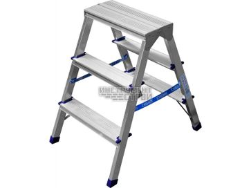 - Лестница-стремянка двухсторонняя Сибин 38825-03 (алюминиевая, 3 ступеней, 65 см) по выгодной цене 1 549 р. руб.;