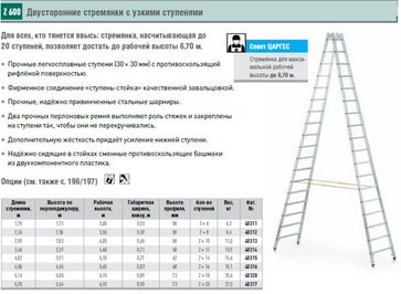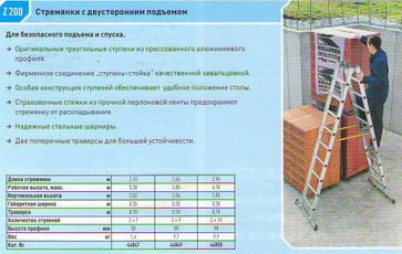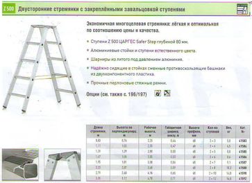 - Стремянка алюминиевая с двусторонним подъёмом (Германия) в каталоге Стремянки в Екатеринбурге;