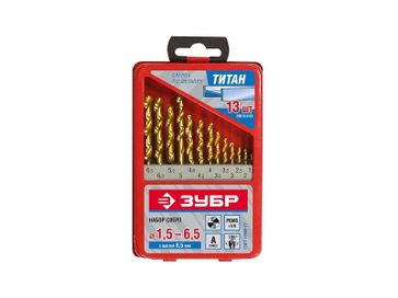 - Набор: Свёрла по металлу с покр. нитрид. титана Зубр 29615-H13 (1,5-6,5мм, 13 шт) по выгодной цене 630 р. руб.;