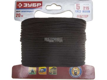 - Шнур полиамидный, плетеный Зубр 50321-05-020 (черный, d 5 мм, 20м) по выгодной цене 140 р. руб.;