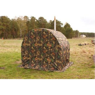 Походная баня ПБ-1, размер 2м2м1.9 , предназначена для коллективного отдыха на природе у воды, и организации банных процедур в экспедиционных и походных условиях, в любом месте и в любое время года. Изделие представляет собой палатку из полиэстероловой ткани Оксфорд 240 с каркасом из эластичных алюминиевых прутков, оснащенную мощной, компактной, переносной дровяной печью.Микроклимат парилки воспроизводит все параметры классической дровяной русской бани. По температуре и влажности, по всем ощущениям, это настоящая баня, несмотря на то, что она выглядит снаружи как обычная палатка. Печка топится дровами и имеет каменную закладку, чтобы получать качественный пар.Тент Тент палатки изготовлен из Ткани Оксфорд 240 ПУ 2000, не имеющего дна . Вода уходит в грунт, и атмосфера парилки поддерживается сухой.Нижняя часть тента оснащена юбкой. Присыпая юбку песком и камнями можно не только обеспечить герметичность парильного помещения, но и зафиксировать палатку на грунте от опрокидывания порывами ветра. Для этого же предназначены петли ветровых оттяжек, при помощи которых посредством шнуров палатку можно привязать к окружающим камням, бревнам или вбитым в грунт кольям (прилагаются в комплекте). Угловые участки юбки изготовлены из прочной ткани Оксфорд 600 с ПВХ для того, чтобы на них можно было уложить камни, в качестве балласта.Каркас Тент палатки опирается на четыре основные стеновые дуги. Каждая дуга - эластичные прутки из сверхлегкого алюминиевого сплава В-95Т соединенные стальными шарнирами, которые в десятки раз превосходит по своим характеристикам фибергласовые трубки, применяемые на более простых и дешевых палатках.В нашей палатке можно стоять и перемещаться в полный рост.Кроме того, на крыше закреплена пластина или кольцо разделки трубы дымохода из оцинкованной стали усиленной термостойкой (до 1300 градусов Цельсия) тканью. Это надежное и пожаро безопастное решение. Ресцветка: лес, камуфляж.