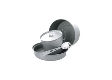 Набор сверхлегкой и компактной посуды из титана подходит для приготовления пищи для 1-2 человек.В комплект входит:Кастрюля: 14,5 х 9 см;Кружка: 9,5 х 7,5 см;Ложка-вилка;Чехол.Вес: 300 г None