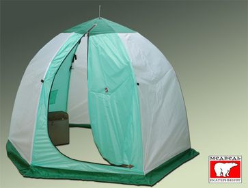 Трёхместная 3-х слойная палатка Медведь высотой 1.65 и шириной 2.4 метра. Позволяет комфортно рыбачить двоим рыбакам, а при необходимости разместиться и втроём. Купить палатку в Екатеринбурге можно в нашем интернет-магазине охоты и рыбалки.Вес палатки: 3.8 кг Ткань: ОксфордЕсли на ледяном открытом пространстве наблюдается сильный ветер, то следует в качестве страховки закрепить на льду заранее одну из растяжек, чтобы ветер не унес неустановленную еще палатку. Для надежной фиксации при небольшом ветре достаточно двух растяжек. А чтобы температура внутри временного убежища стала комфортной для пребывания, рекомендуется тщательно прикрыть юбку палатки «Медведь» снегом.