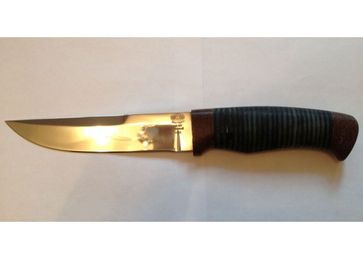 Клинок - марка стали ЭИ-107 (нержавеющая). Рукоять выполнена из наборной кожи, легко чистится, водонепроницаемая. Гарда и тыльник изготовлены из текстолита.После использования нож необходимо промыть, протереть. Клинок покрыть силиконом или маслом.Комплектуется ножнами из натуральной кожиХарактеристики:Общая длина изделия: 253 ммДлина клинка: 132 ммНаибольшая ширина клинка: 30 ммНаибольшая толщина клинка: 3 ммТвердость клинка, HRC: 58-62 None