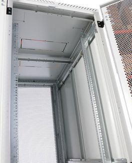 Шкаф серии ШТК-С предназначен для размещения серверного оборудования, организации центров хранения и обработки данных. Шкаф имеет усиленную конструкцию. Включает две сварные рамы, соединенные комплектом швеллеров, основание и крышу. Легок в сборке. Распределенная вертикальная нагрузка до 1000 кг. Шкаф стандартно комплектуется одинарными или двойными перфорированными дверями с ригельными замками и боковыми стенками. Одинарные двери имеют как правую, так и левую навеску, угол открытия 180 градусов. Стенки надежно фиксируются точечными замками. Доступ для монтажа, коммутации и обслуживания возможен с четырех сторон, через боковые легкосъемные стенки, переднюю и заднюю двери. Шкаф имеет 4 оцинкованные вертикальные направляющие, регулируемые по глубине. Кабельные вводы находятся в основании и крыше шкафа. В крыше, один ввод - 290х40 мм, в основании пять кабельных вводов - 242х40 мм. Предусмотрены места для установки вентиляторных модулей МВ-400-2. В основание или крышу ШТК-С глубиной 1000 мм. возможна установка трех вентиляторных модулей. В основание шкафа возможна установка поворотных роликов и винтовых опор (ножек), позволяющих компенсировать неровности пола. Шкаф имеет систему заземления. Поставляется разобранным в четырех транспортных местах. Цвет (порошковая покраска с предварительным фосфатированием) - RAL 7035 светло-серый. По предварительному заказу возможен выпуск шкафов 37U, 47U, а также цвет - RAL 9005 черный. Производитель имеет право вносить изменения в конструкцию изделия без ухудшения его функциональных характеристик. Шкаф выполнен в соответствии с требованиями стандарта IEC 60 297 "Конструкции механические серии 482,6 (19 дюймов)" ХарактеристикаВеличинаАртикулШТК-С-45.6.10-44ААКод номенклатуры30144535301Высота, U45Высота, мм2150Ширина, мм600Глубина, мм1060Полезная глубина, мм850Вес изделия, кг156Распределенная нагрузка, кг1000Тип передней двериПерфорацияТип задней двериПерфорация Предоплата:наличные,безнал цены с НДС, без комисс Возможен самовывоз.