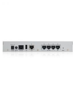 Центр безопасности для малого офисаЦентр безопасности USG 40 это высокоинтегрированное устройство нового поколения, предназначенное для решения широкого спектра задач по построению корпоративной сети малого бизнеса, подключения ее к Интернету, создания безопасных каналов связи с удаленными подразделениями и сотрудниками и всесторонней защиты сетевой инфраструктуры от угроз из Интернета.В компактном корпусе настольного исполнения USG 40 сочетаются новейшая аппаратная платформа, основанная на современном высокопроизводительном процессоре Cavium Octeon и операционная система ZLD, надежность и функциональность которой подтверждена многолетней успешной эксплуатацией центров безопасности ZyWALL USG различными компаниями во многих странах мира. Благодаря этому USG 40 имеет впечатляющий арсенал функций для построения IT-инфраструктуры малого бизнеса и демонстрирует одни из самых высоких показателей производительности среди конкурирующих устройств других производителей.Оснащенный двумя внешними гигабитными интерфейсами и USB-портом для подключения модемов 3G/4G центр безопасности USG 40 позволяет одновременно использовать три широкополосных канала Интернета от разных провайдеров, тем самым обеспечивая отказоустойчивость и увеличивая суммарную пропускную способность подключения. Это гарантирует постоянную доступность Интернет-сервисов необходимых для ведения бизнеса и надежную связь с удаленными подразделениями.Многофункциональный VPN-шлюз центра безопасности USG 40 предназначен для объединения географически распределеных подразделений в единую информационную инфраструктуру. Технические характеристикиАппаратные характеристикиПорты WAN RJ45 GbE 1Порты LAN/DMZ RJ45 GbE 3Порты WAN/LAN/DMZ RJ45 GbE 1Консольный порт RJ45 ДаПорты USB 2.0 1Объем оперативной памяти, Байт 1GОбъем памяти flash, Байт 4GСветодиодные индикаторы PWR, SYS, USB, PORTSКнопка сброса настроек ДаКнопка включения ДаПроизводительностьПропускная способность МСЭ (UDP, размер пакета 1,518 байт), Мбит/с 400Пропускная