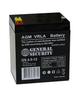 Особенности аккумуляторной батареи General Security GS 4,5-12минимальное обслуживание;герметичность (VRLA – технология);надёжность и безопасность;незначительный саморазряд (не более 3% в месяц);малое внутреннее сопротивление;способность к восстановлению после глубокого разряда;срок службы 3 – 5 лет;кол-во циклов при 100% разряде 260;номинальное напряжение 6,12В;номинальная ёмкость от 4.5 до 100Ач.использование стекловолокна, пропитанного электролитом (AGM – технология);использование электролита высокого качества;свинцово-кальциевые положительные и отрицательные пластины;высокая выходная мощность при небольшом объёме батареи.ХарактеристикиМодельGS 4.5-12Кол-во элементов в блоке6Номинальное напряжение, В12Емкость, Ач4.5Вес, Кг1.7Габариты, мм91x71x105Примерное внутреннее сопротивление, мОм38Рабочая температура, ˚С-40 - +60Оптимальная рабочая температура, ˚С25Напряжение подзаряда, В13.5 - 13.8Максимальный ток заряда, A1.35Напряжение заряда при циклическом режиме, В14.4 - 15 Предоплата:наличные,безнал цены с НДС, без комисс Возможен самовывоз.
