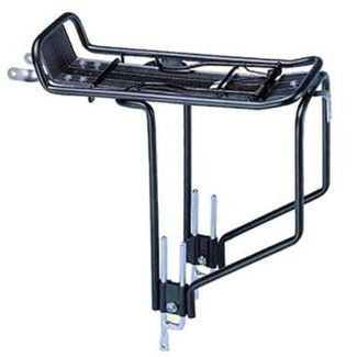ВелобагажникMount BY-328NC Характеристика: Материал - алюминий. Максимальная нагрузка - 25 кг. Пружинный зажим. Крепление для светоотражателя. Защита от попадания велорюкзака в колесо. Цвет: черный. None