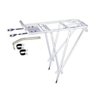 ВелобагажникTranz X CD-20AC Характеристика: Материал - алюминий. Максимальная нагрузка - 25 кг. Пружинный зажим. Крепление для светоотражателя Защита от попадания велорюкзака в колесо. Цвет:серебристый . None