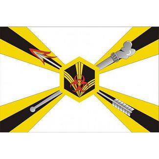 Флаг Войск радиационной, химической и биологической защиты РФ, Мегафлаг Материал: Ткань Т101 - полиэфирный шелкСостав ткани: 100% полиэфир, 55г/кв.мИзображение нанесено методом сублимационной печати на ткани. None