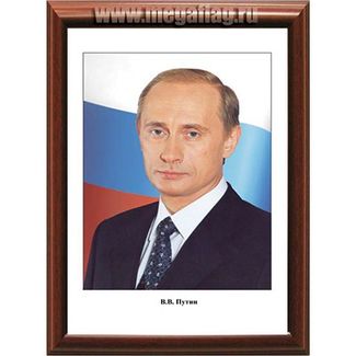 Портрет Путина В.В, Мегафлаг Материал: Т902 - сатенДополнительная информация: Рама деревянная (темный бук) None
