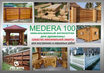 - Medera 100 Антисептик-консервант для максимальной защиты древесины. Для наружных и внутренних работ. Готовый к применению раствор по выгодной цене Цену уточняйте руб.;