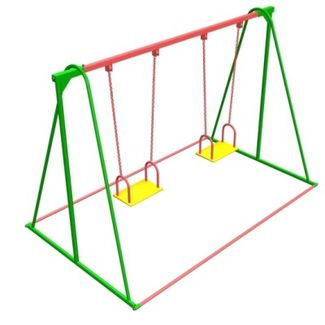 Качели на метал.стойках двойные (гибкий подвес), Akiba Оборудованиепредназначено для использования детьми до 12-ти лет. Размеры:2,6 х 1,5 х 1,8 м. Зонабезопасности: 2,6 х 6,6 м. Вразобранном виде упаковка: 1,7 м3. Вес:65 кг. None
