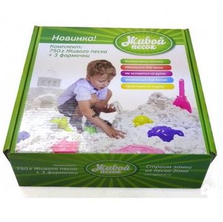 Живой песок, 750г Живой Песок - это удивительное вещество. Он достаточно вязкий, чтобы даже дети могли лепить из него любые фигурки. В то же время он может сыпаться сквозь пальцы и напоминать теплые дни на морском пляже с мелким, теплым и белым песочком. None