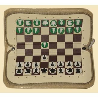 Шахматы магнитные карманные на молнии, ШП Магнитная складная доска футляр из искусственной кожи на молнии.Размер доски в разложенном виде: 20 x 20 см.Размер клетки 17 х 17 мм.В комплект входят плоские магнитные фигуры-таблетки. None